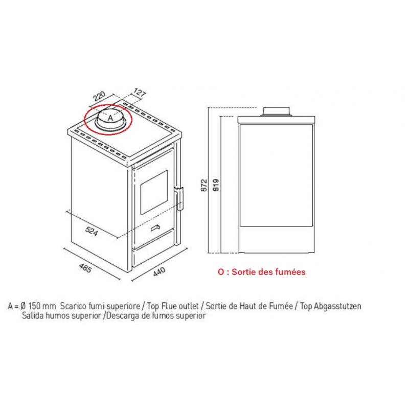Schéma technique du Poêle à bois avec plaque de cuisson – EVACALOR Sandra 6 kW