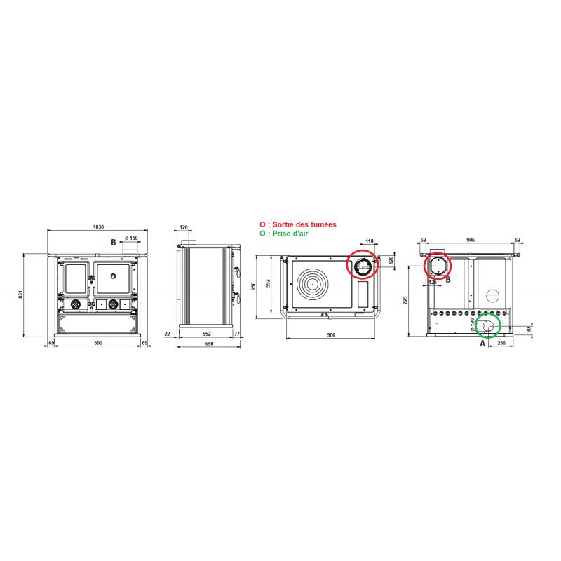 Description technique de la Cuisinière à bois – LA NORDICA Rosa Steel 5.0 8.8 kW