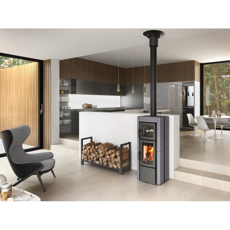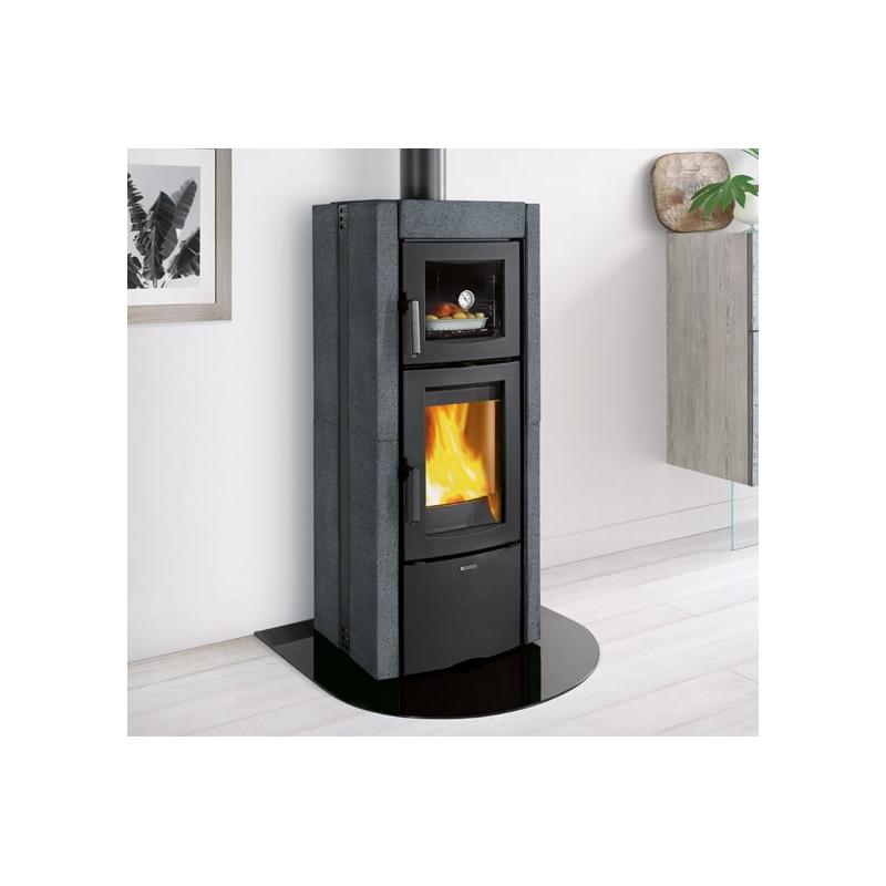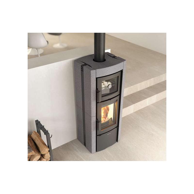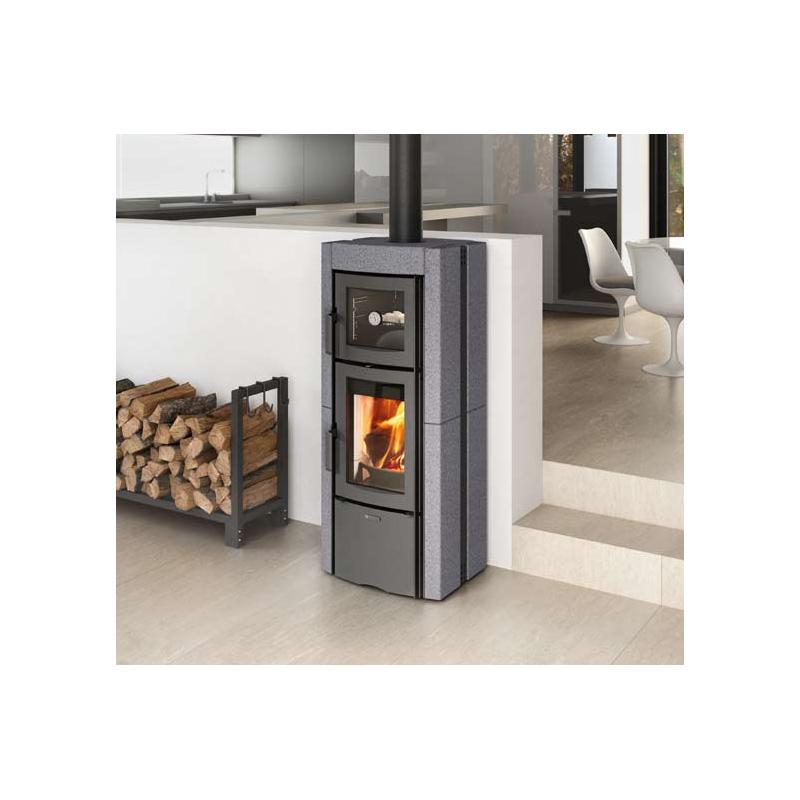 Le poêle à bois avec four Ester Forno Evo de la marque La Nordica vous offrira la possibilité de chauffer votre maison jusqu’à 235 m3. Le revêtement du poêle à bois avec four Ester Forno Evo possède un revêtement en pierre ce qui lui permet d’accumuler la chaleur produite et de la restituer sur une plus longue période.