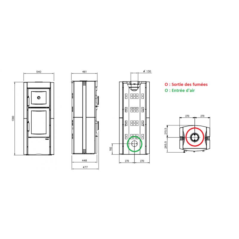 - Diamètre des sorties des fumées : 130 mm