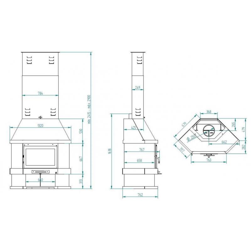 - Dimensions : L 1320 x P 790 x H 2415 à 2900 mm