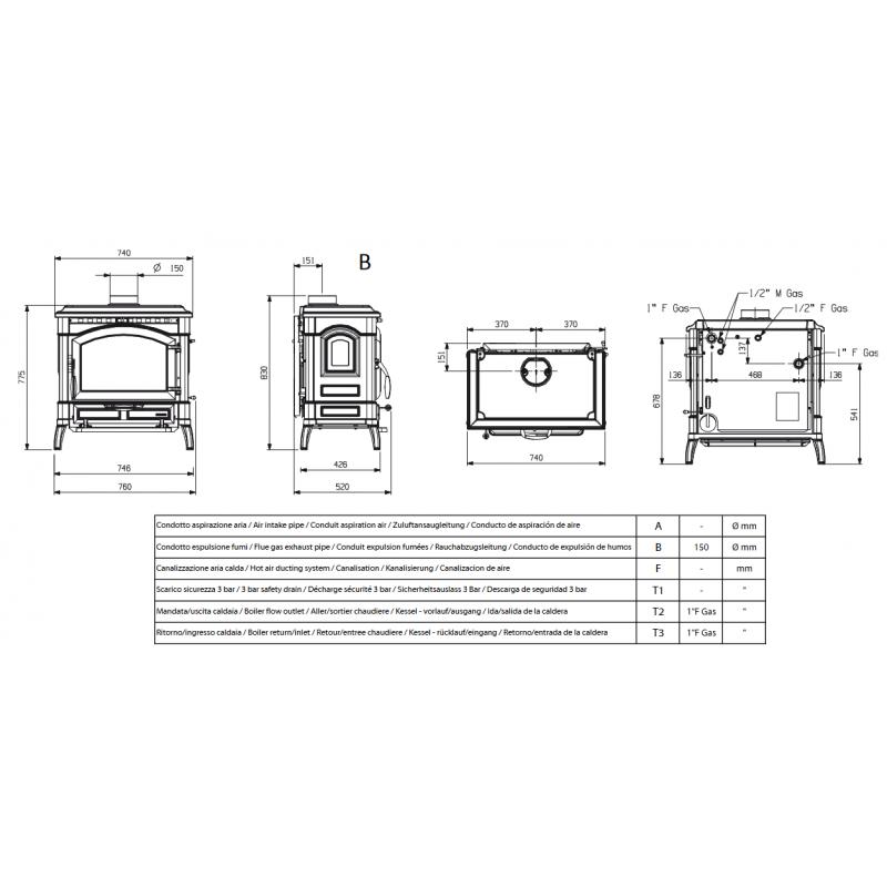 Caractéristiques techniques du Thermo Poêle à bois – LA NORDICA TermoIsotta DSA 15 kW